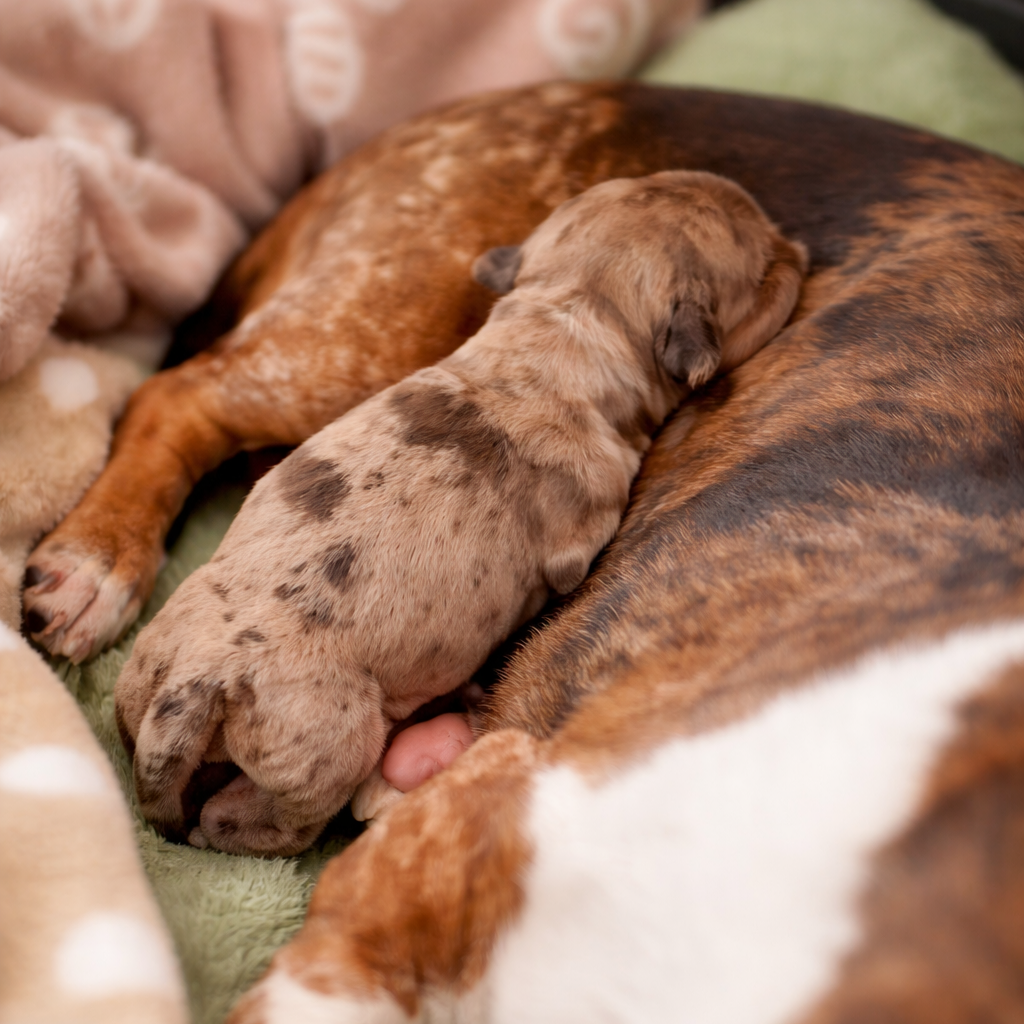 Les chiots naissent dans la maison, entourés de leur mère et des autres chiens de l’élevage. Dès leurs premiers jours, ils sont bercés par les bruits du quotidien, les interactions naturelles et la présence humaine.